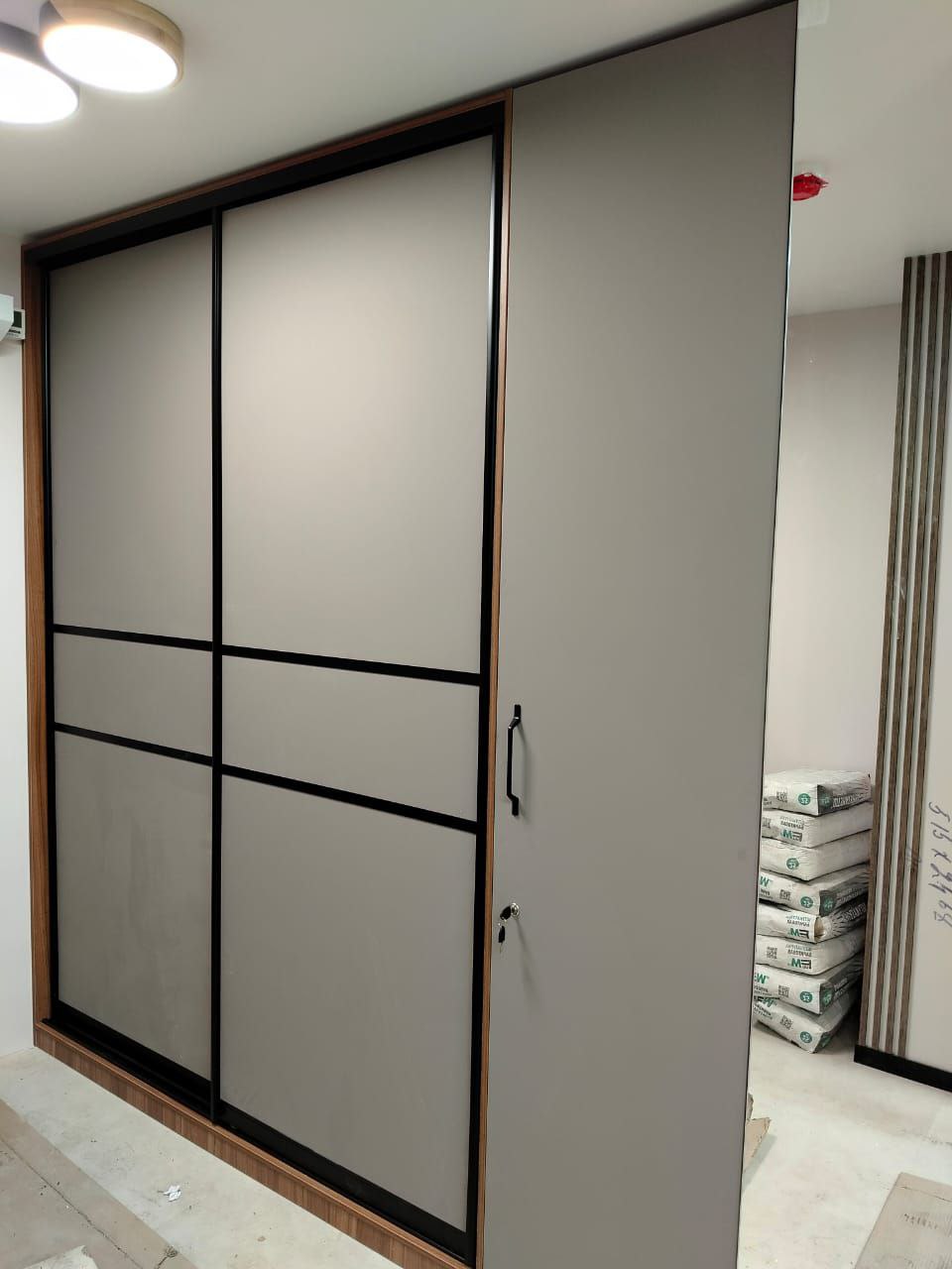 Шкаф-купе 1790х2500х645 + распашной шкаф 550х2500х645, корпус орех дижон натуральный h3734 st9 Egger, фасады Айрон SF025 матовый